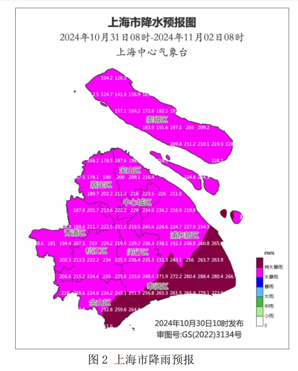 受“康妮”外围环流和冷空气共同影响,10月31日傍晚到11月1日,崇明有大暴雨,过程雨量120~180毫米,局部可达200~250毫米,最大小时雨强40~70毫米,降水具有极端性。10月31日夜里起风力逐渐增大,11月1日最大陆地阵风8~9级,长江口区阵风9~10级。