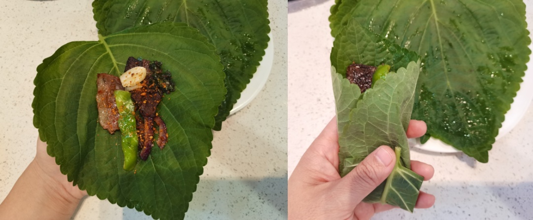 紫苏叶包烤肉,很多人都吃过吧!一口就把紫苏的香味和肉香全部都炫进嘴里啦!