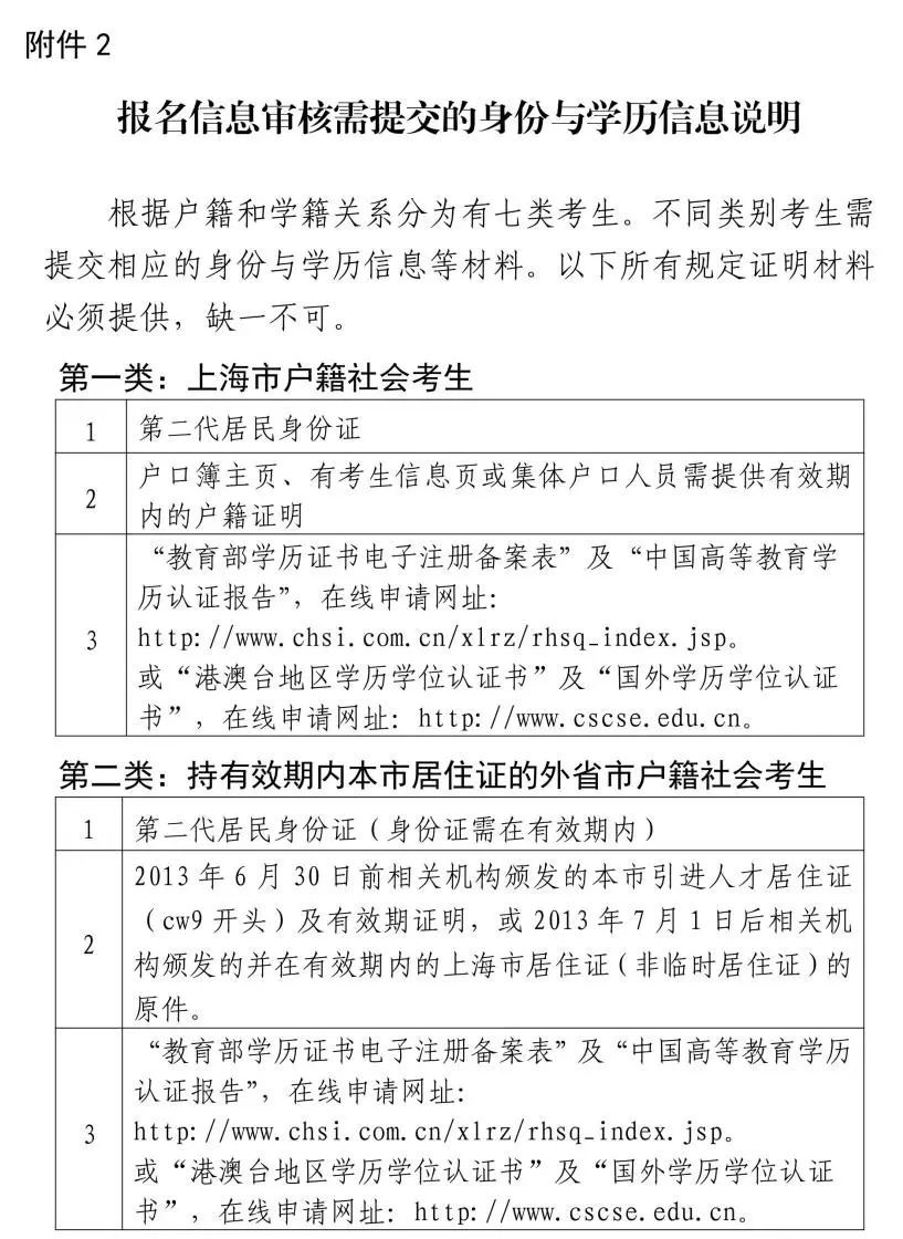 注:持有本市有效期内居住证是指2013年6月30日前办理的,在有效期内的本市人才引进类居住证(证件编号为CW9开头)或2013年7月1日后办理的、在有效期内的本市居住证,临时居住证或正在登记办理中的不得报考。