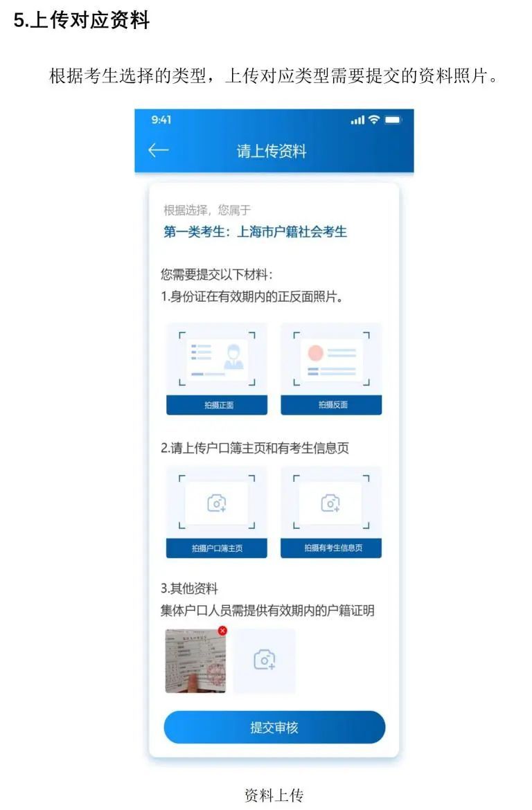 (1)考区选择:社会考生选择“上海考区(面试)”、面试类别、面试科目,完成其他信息录入。