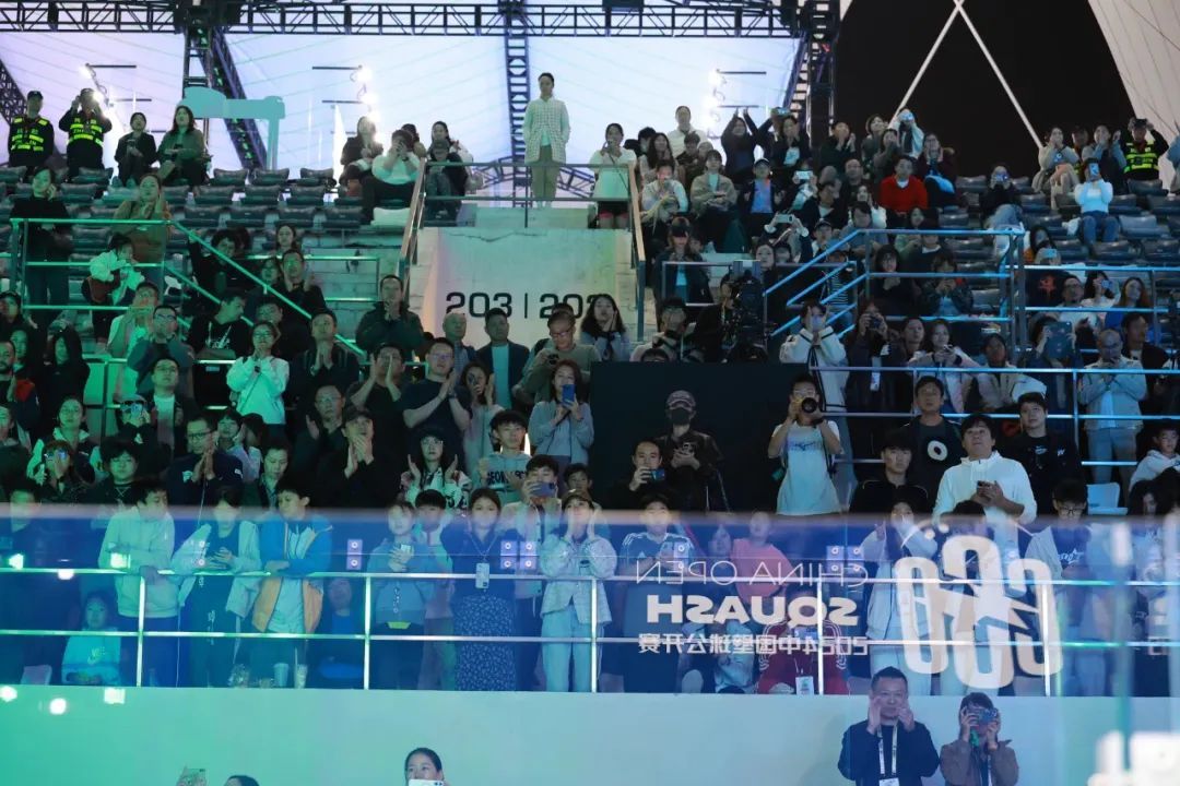 月亮湾的看台上,有不少刚成为壁球初学者的小朋友。“7月刚给他报了个体验班,刚好中国壁球公开赛回归,就带他来感受一下。”张卉边说边摸了摸儿子的头,未来几年,她还会带着孩子来现场,感受中国壁球公开赛的魅力。