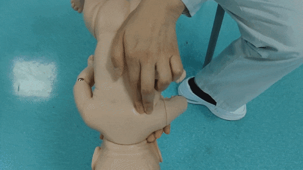 另一手按压住握拳的手,迅速向上用力,推压患者的腹部。重复以上手法,直到异物排出。