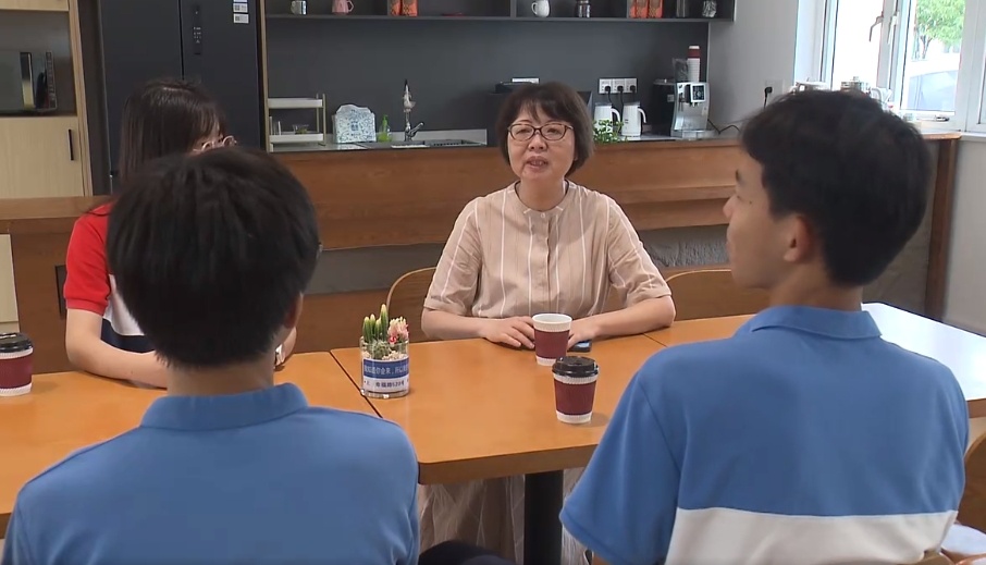 在张堰中学的研习室里,阮旖每周不定时会和学生们围坐在一起,进行谈心交流,询问了解他们的学习和生活。多年来,阮旖在学校文化建设和育人实践中坚持以“让智慧流动起来”为核心理念,办好家门口的好学校。