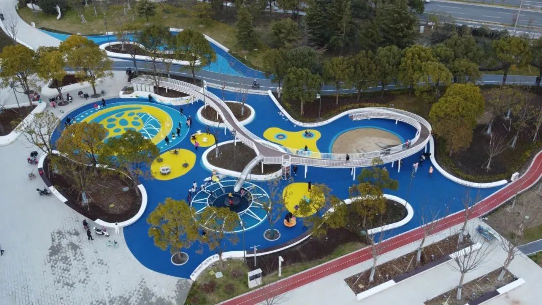 远香湖会客厅不仅欢迎大朋友,更爱护童真无邪的小朋友。从高处俯瞰,远香湖儿童乐园是一片蓝色的游玩基地,山丘、沙坑、秋千……孩子们可以在这里尽情玩耍。