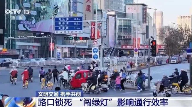 记者在晚高峰期间跟随陕西西安交警来到一处小型丁字路口进行实地体验。
