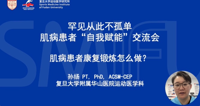 运动医学科孙扬治疗师通过视频介绍了针对肌病患者的康复锻炼方法,与现场患友进行线上互动,帮助大家了解如何通过适当的运动和锻炼,改善肌肉功能,促进康复。