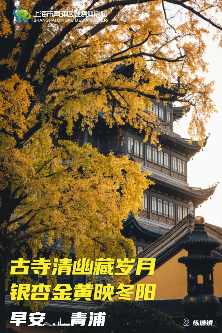 早安青浦|古寺清幽藏岁月,银杏金黄映冬阳