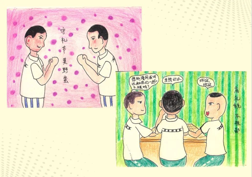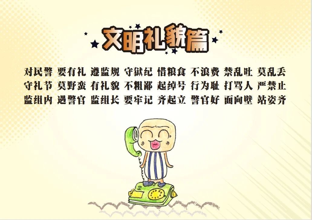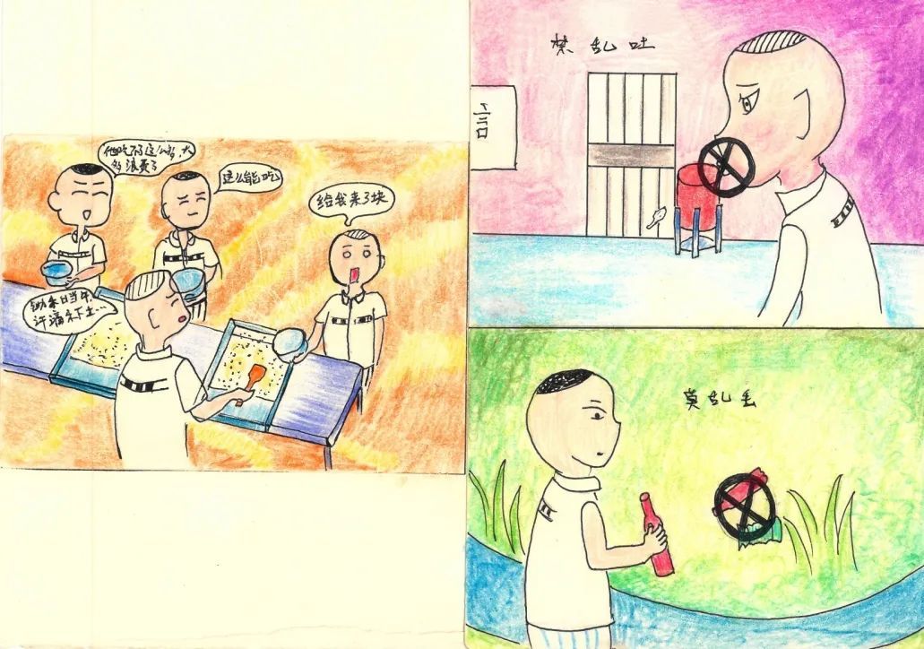 监狱服刑罪犯在民警指导下,将改造“三字经”创作成为生动活泼的漫画。今天我们来看第三期——改造“三字经”漫画之文明礼貌。
