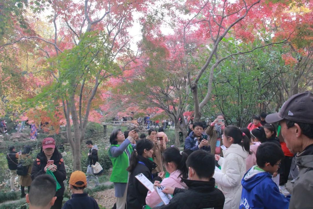 在这个色彩斑斓的季节,嘉定秋霞圃的枫叶如同火焰般绚烂,迎来绝美打卡时刻。12月7日,“枫趣横生”自然体验坊在秋霞圃举办,吸引不少亲子家庭参与。活动结合枫叶自然小课堂、户外探寻观察和系列环创游戏体验,让小朋友们在轻松愉快的氛围中学习自然知识,感受大自然的独特魅力。