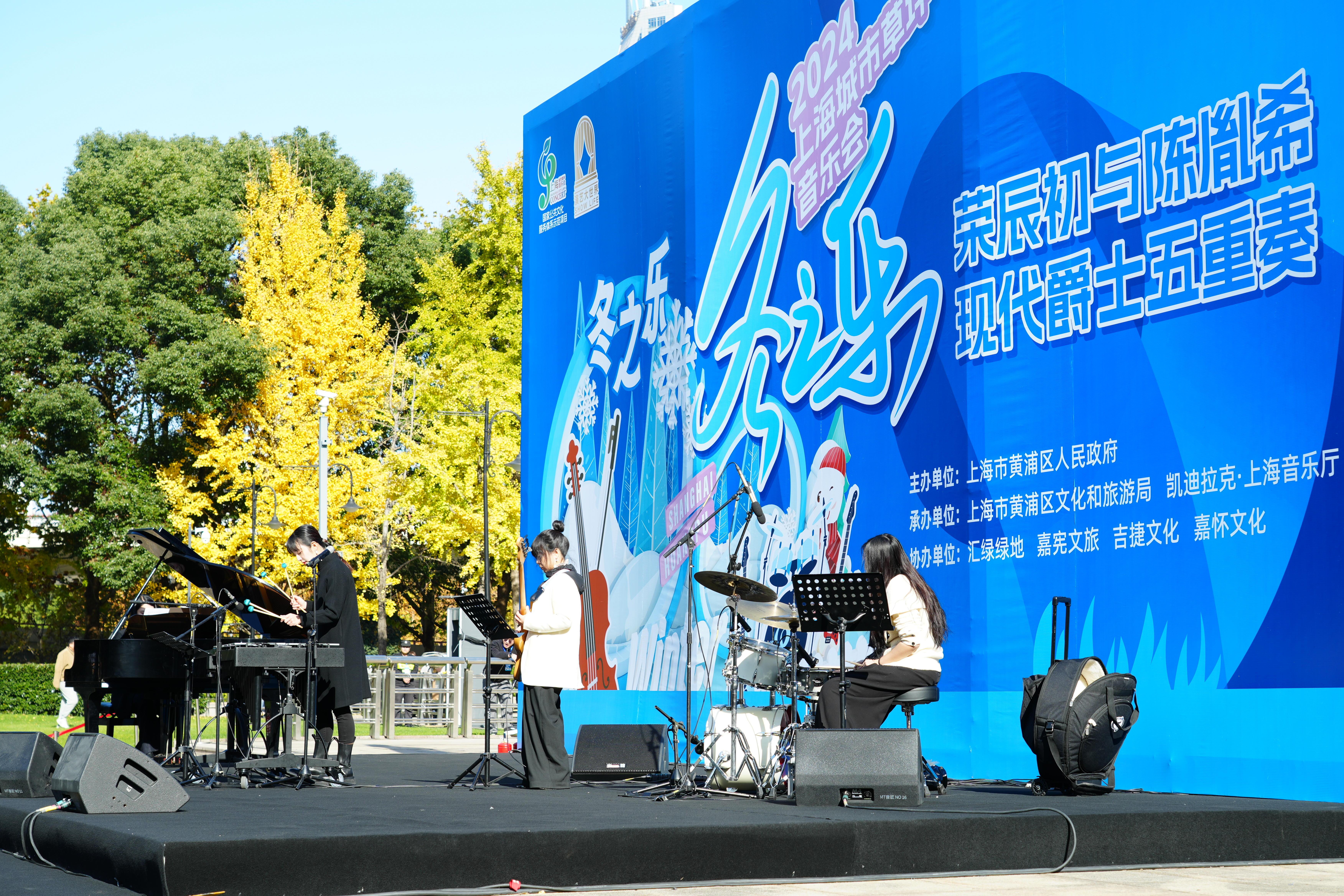 城市草坪音乐广场上,微风轻拂,银杏叶沙沙作响,仿佛在为即将奏响的音乐轻声吟唱。青年打击乐演奏家、音乐与哲学跨学科博士、上海师范大学与上海戏剧学院的青年教师荣辰初,与著名爵士歌唱家陈胤希,共同演绎出一场如梦如幻的当代爵士乐音乐会。那音符恰似灵动的精灵,在银杏林间穿梭嬉戏,时而激昂,时而舒缓,引得台下观众如痴如醉。音乐制作人、青年二胡演奏家马稼骏演绎了《恬》《涟漪》等原创作品,《夜上海》《月圆花好》等经典曲目通过上海六幺琵琶国乐团的“上海姑娘”们娓娓道来,散发出浓郁的海派韵味。观众们或坐或站,眼神中满是陶醉与欣赏,仿佛被这音乐施了魔法,全身心地沉浸其中,感受着上海这座城市独特的经典魅力与浪漫优雅的气息。