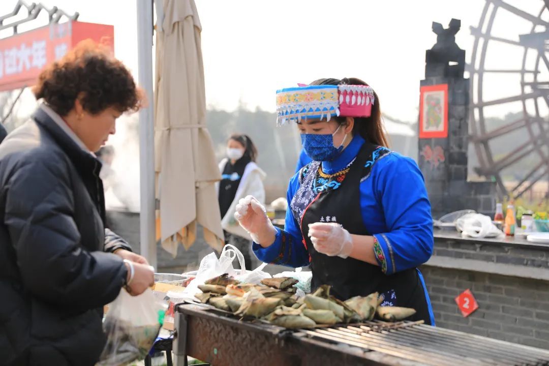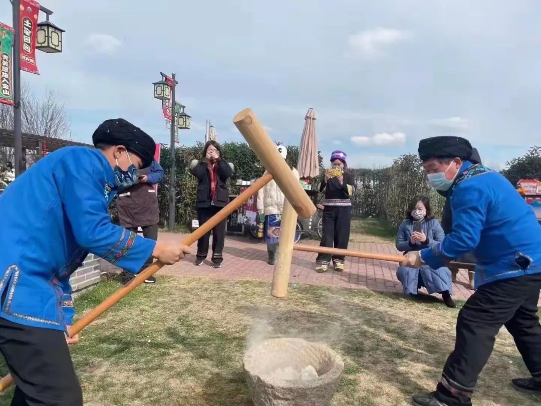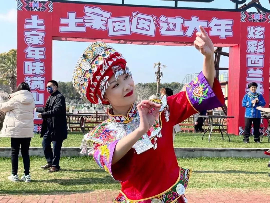 山阳田园与土家族文化的结缘起步于2021年5月。当时,湖北恩施土家族苗族自治州农村带头人、全国三八红旗手、来凤县农园果蔬专业合作社理事长向辉和她的伙伴来到山阳镇,参加由中央农广校在山阳田园举办的农村实用人才培训班实践课。上海山阳旅游发展有限公司经理计民在与向辉的交流中,被土家族传统文化吸引,双方一拍即合,开启了合作。党建“牵红线”,共谱“振兴曲”。很快,山阳旅游公司党支部就与农园(恩施)农业发展有限公司党支部签订了结对共建协议。同年,山阳镇与湖北恩施自治州来凤县签订了上海湾区(山阳)全域旅游战略协议。2022年,“滬之源全域旅游联盟”正式成立,湖北省恩施州来凤县也是联盟成员之一。几年间,山阳田园在探索实践中将土家文化“IP”开发到了极致。在山阳田园民宿街开设特色农产品销售点,打造土家族非遗技艺展示、观摩、体验一站式服务区,让土家族文化在山阳田园“安家”。举办“土家囡囡过大年——上海湾区(山阳)湖北来凤年”活动,通过年货节、藤茶咖啡手冲手网烘焙大赛、来凤县特色春节等活动,让市民游客不出上海就能“沉浸式”体验到不一样的年味。推出“红星照耀中国,重走长征路”项目,带领学生游客走出上海体验精品红色旅游路线。