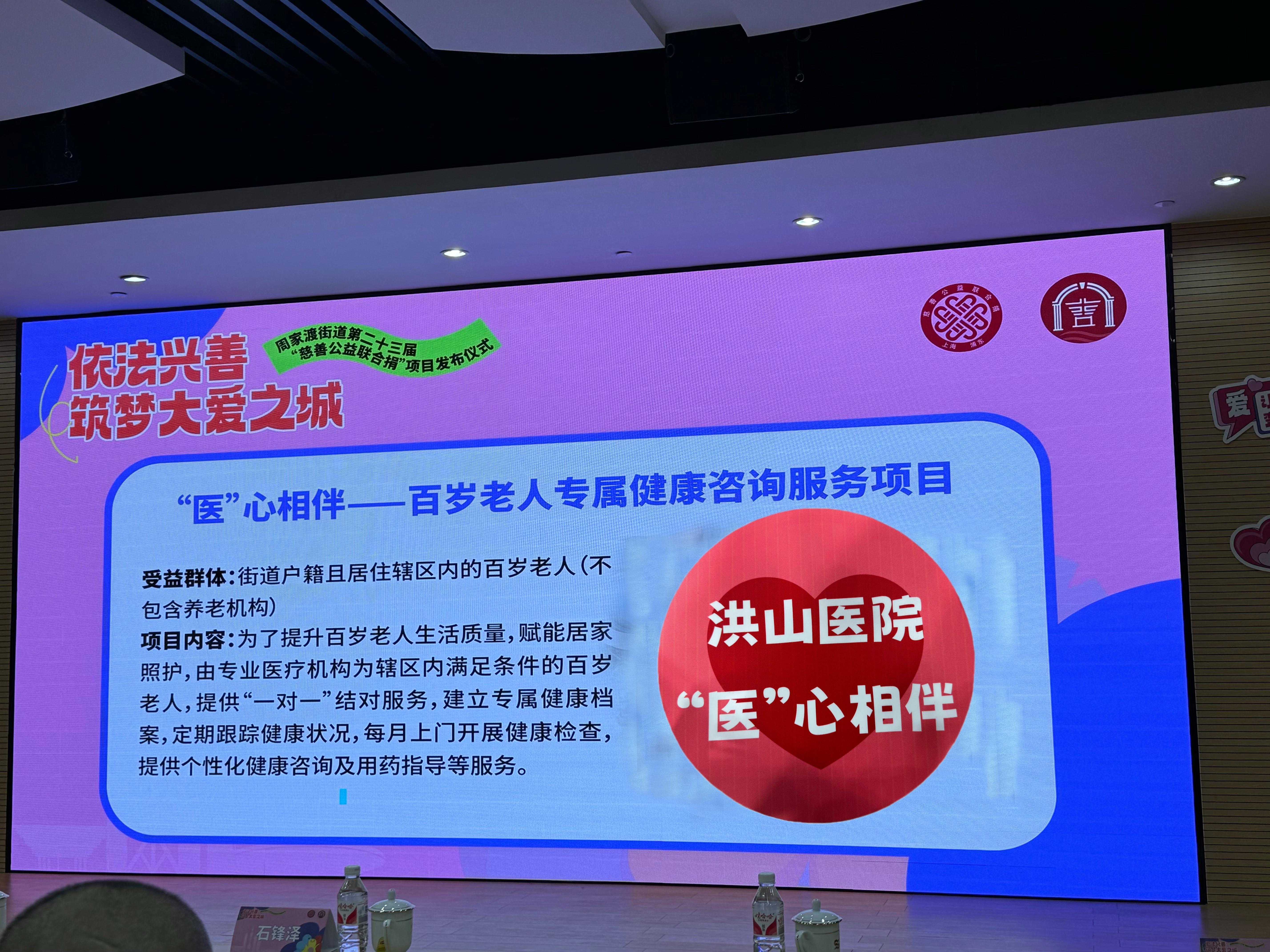 近日,在“依法兴善,筑梦大爱之城”第二十三届“慈善公益联合捐”项目发布仪式上,黄浦区肿瘤防治院积极响应慈善号召,推出了“医心相伴——百岁老人专属健康咨询服务项目”,旨在通过专业的医疗资源,为社区内的百岁老人提供全方位的健康支持,为慈善事业添砖加瓦。
