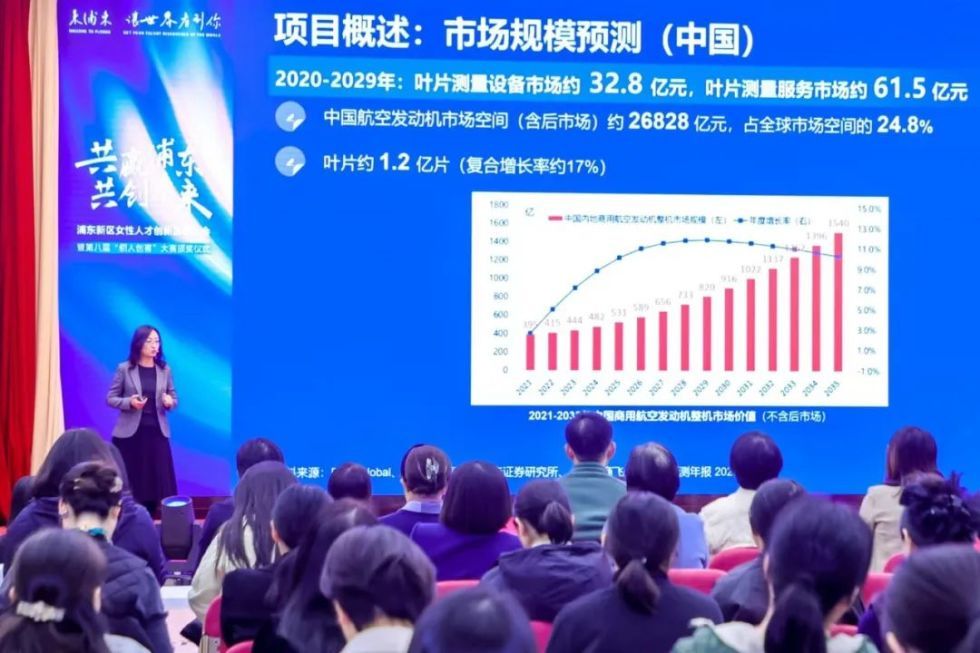 其中,玉贲智能创始人兼CEO姚潇作为AI行业的连续创业者,用大数据打开了智能制造的新“视”界,用AI保障安全生产,让危险无所遁形。世航智能研发副总经理、知识产权总监冯翠芝表示,全国有20多万艘商船存在刚性需求,团队自主研发的水下特种机器人与无人装备,助力我国海洋装备智能化、低碳化和产业化。芯小树科技联合创始人孙晴悦带领她的团队,让脑机接口从想象走向落地,自研芯片实现颠覆式创新。上科大创艺学院科研平台负责人、智造系统工程中心副主任武颖娜表示,中国航空发动机市场空间约26828亿元,叶片三维轮廓光学测量研究大有潜力……这些女性人才在浦东这片热土上大展宏图,尽显巾帼风范。