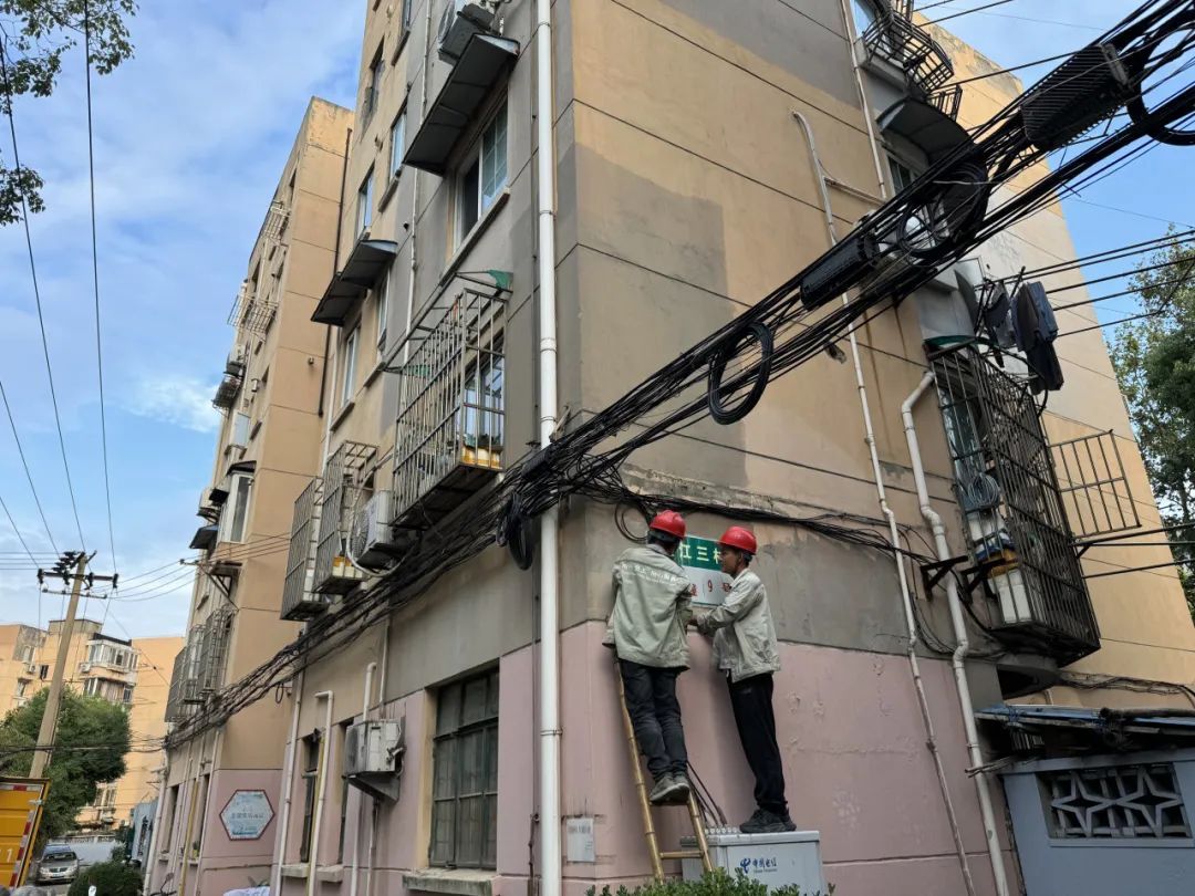 针对前期独居老人向居委反映的临江三村9号楼门口电线垂落至阳台,存在安全隐患的问题,党总支书记第一时间到现场对垂落电线的区域进行查看,并联系共建单位中国电信公司及时整改。次日,电信公司工作人员来到社区,他们爬上围墙,小心翼翼地清理和固定垂落的电线和网线,整个清理过程井然有序,得到了居民一致好评。“以前看着跟蜘蛛网一样,现在好看多了也整齐了许多,也安全多了”,阿婆开心地说。