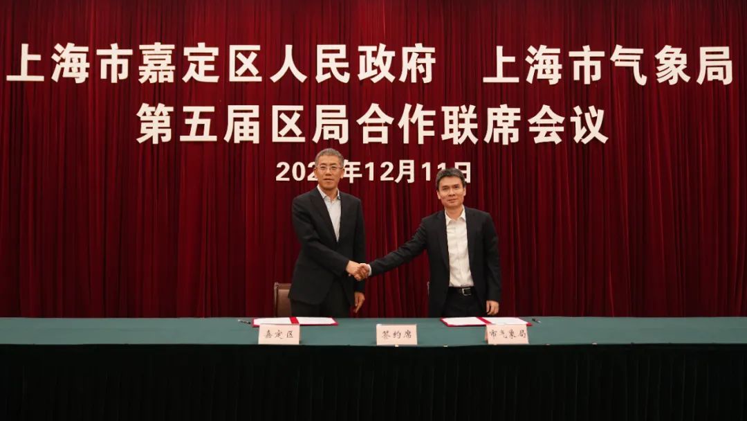 会上,双方签署《上海市嘉定区人民政府 上海市气象局关于加快推进气象高质量发展助力嘉定现代化新型城市建设合作框架协议》。