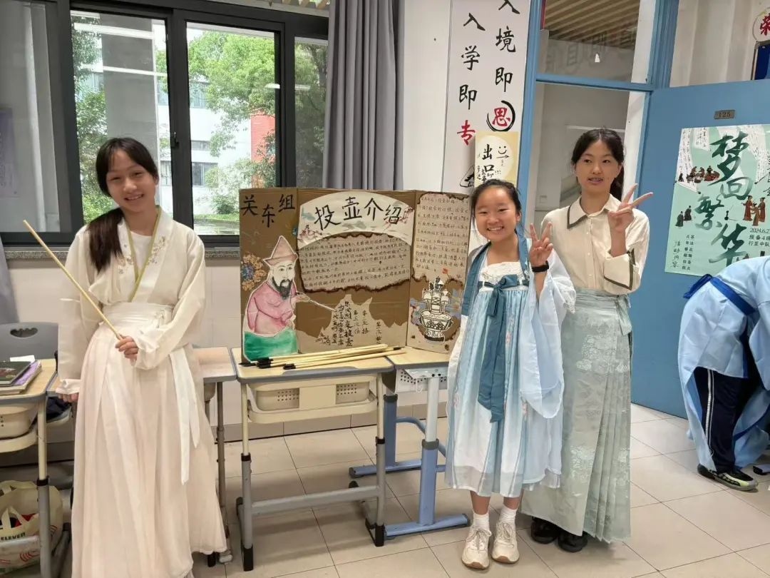 由美术教师高田、语文教师刘冰、历史教师张尹三位教师共同授课的《梦回繁华》课程中,学生们敏锐地发现了《清明上河图》里具有广告性质的招牌、幌子以及它们背后所反映的宋代商业文化,并以此为落点设计广告牌,策划了一场再现宋代市井生活、凸显宋代文化的游园会。