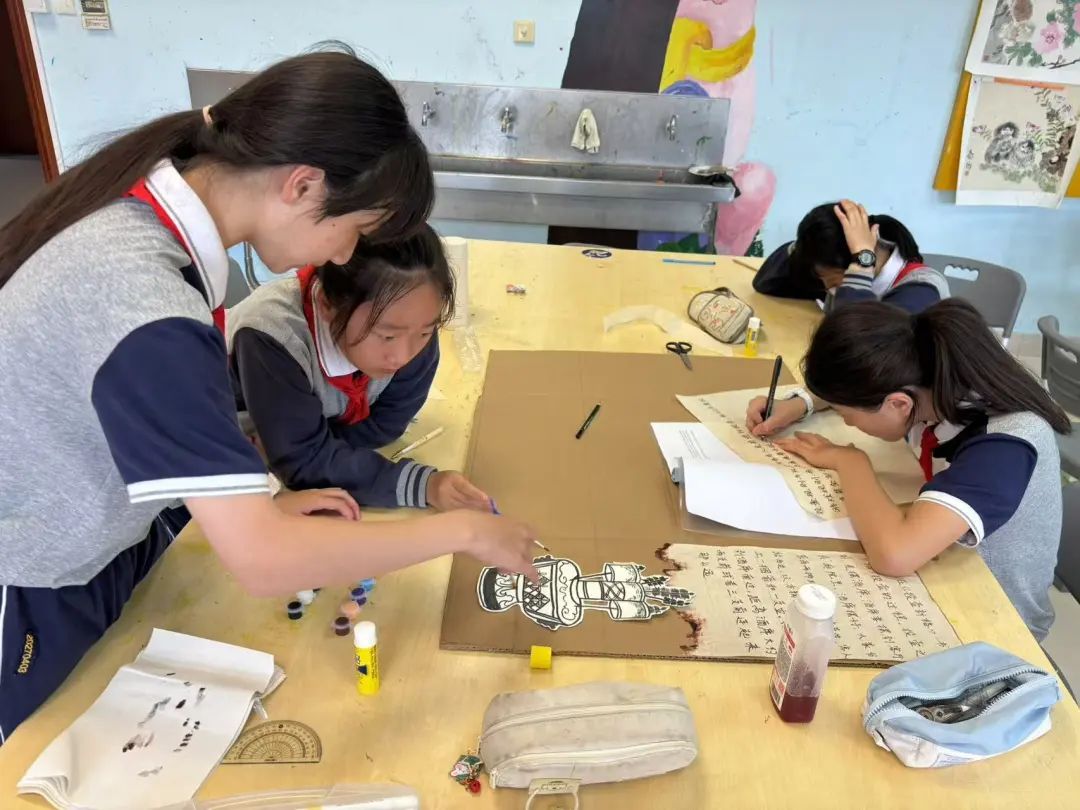 在《梦回繁华》项目化学习课堂上,学生们正从宋代名画中分析、提取摊位和职业形象,借助绘画技巧及文史知识设计摊位广告牌。这是一门由美术、语文和历史教师共同开发的跨学科项目化学习,孩子们将在长达一个学期、每周一课时的学习中,共同完成一个项目——策划一场兼具历史性与创新性的具有宋代风格的游园会。 为此,学生们化身不同角色,完成一个个阶段性任务:积累关于宋代文学、历史、美术的资料,开展调研、丰富资料,确定摊位和卖点后设计广告牌,策划筹备集市,举办蹴鞠比赛…… 如今,在华东师范大学第二附属中学附属初级中学的校园内、课堂上,项目化学习深受师生欢迎。自2020年学校开始探索项目化学习至今,已有50余门课先后推出,这些生动有趣的课不仅在校内掀起热潮,也将师生推向了更广阔的舞台,先后有十余个案例获得市级奖项,学校获得了“上海市义务教育项目化学习种子实验校”称号,并开展了市级项目化学习工作坊。