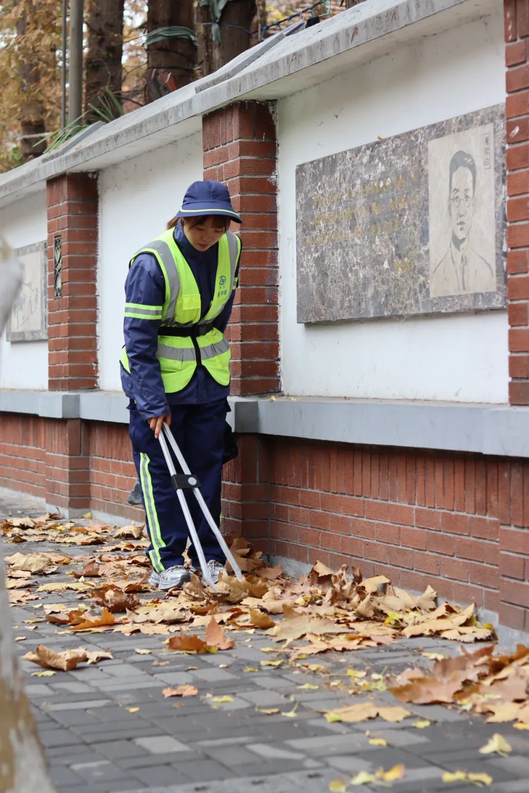让市民在落叶纷飞中