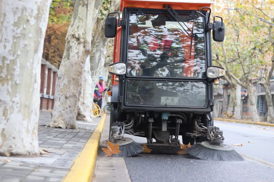 不过,美好背后也有考量,天气变化便是其中之一。虹口城发下属虹远保洁公司川北作业块经理邰俊祺介绍,遇到雨天、雾霾等恶劣天气时,落叶可能会变得湿滑,保洁模式会适时调整。环卫工人会及时清理落叶,防止雨水口被落叶遮蔽,影响交通安全。一旦发生道路污染等意外情况,也会进行集中清扫,确保道路的安全畅通。