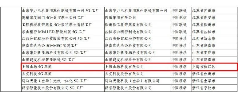 近日,工业和信息化部发布《2024年5G工厂名录》,来自松江的上海宝鸟5G工厂、上海山源5G车间成功入选。