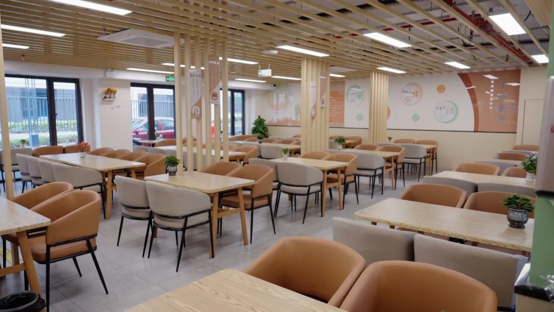 蓝湾社区长者食堂位于正旭路399弄42号,面积近400平方米,能够同时容纳上百人用餐。食堂采用智慧计量计价系统,并实行自助餐方式,根据菜品单价及克重进行智能计费。