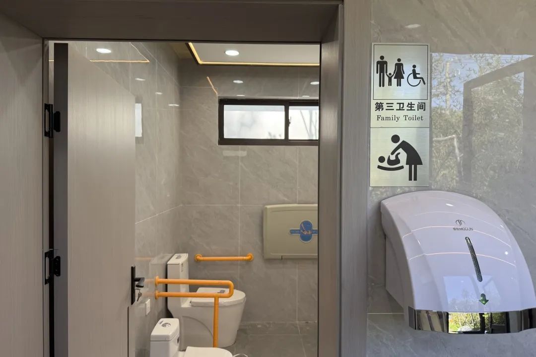 采用一厕一方案,全新升级改造5座公厕。公厕内部加装扶手;增配坐便器、安装便器扶手;增加格挡,保护隐私。各类标识标贴也是通过精心设计,简约大方。