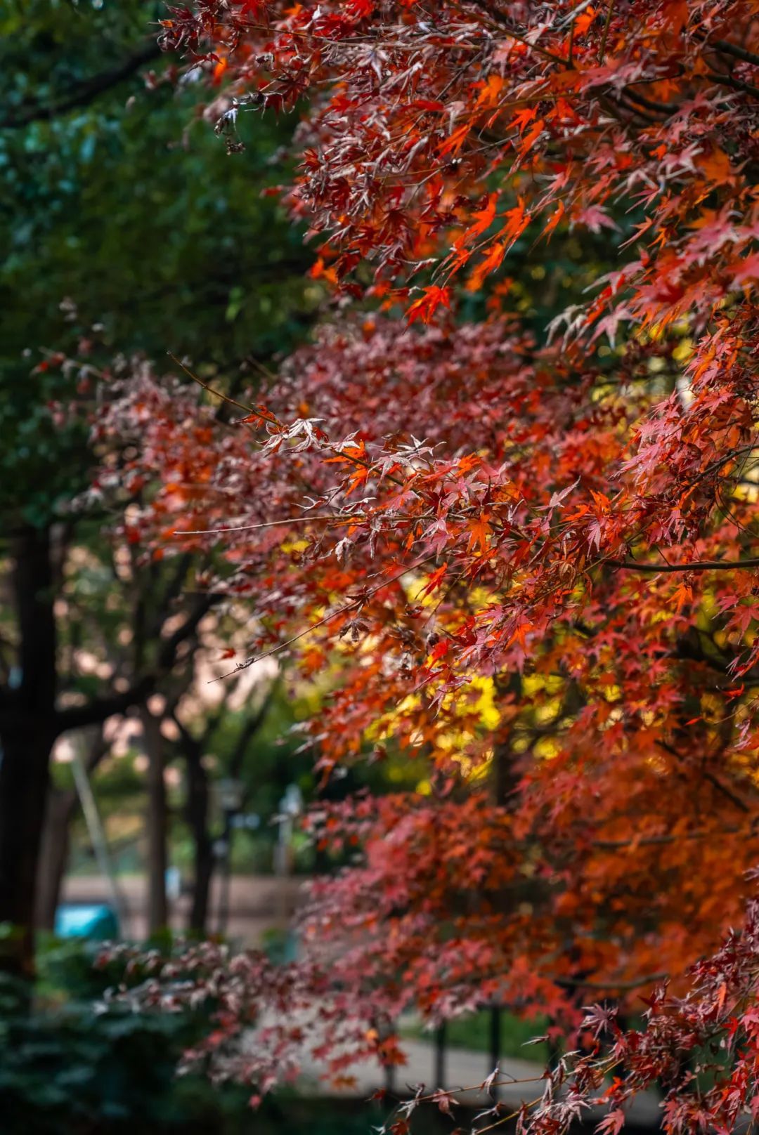 那片藏不住的“红”与公园内的其它色叶交相辉映