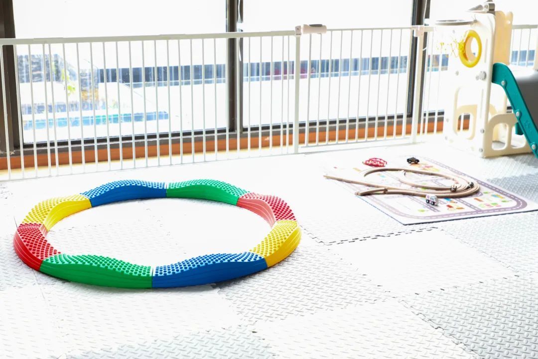 上午10点左右,在游戏区的宝宝们会进行“圆圈游戏”,通过音乐、绘本等培养宝宝的音乐节奏感和语言表达能力。