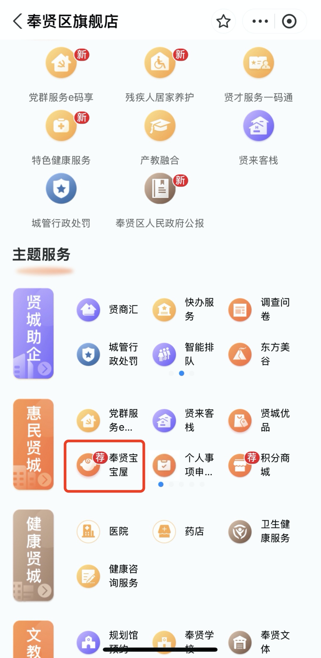 找到“奉贤宝宝屋”选项