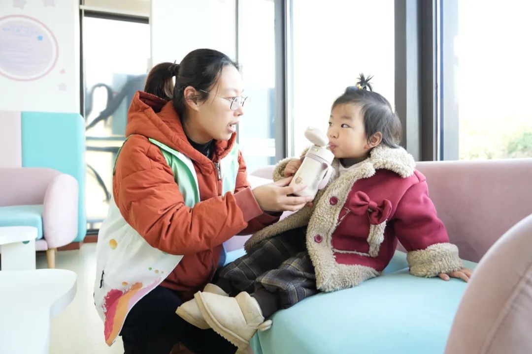 在活动时,老师们会时刻关注每个宝宝的状态,鼓励宝宝多喝温水,及时补充水分,也会提醒并带领宝宝去上厕所。