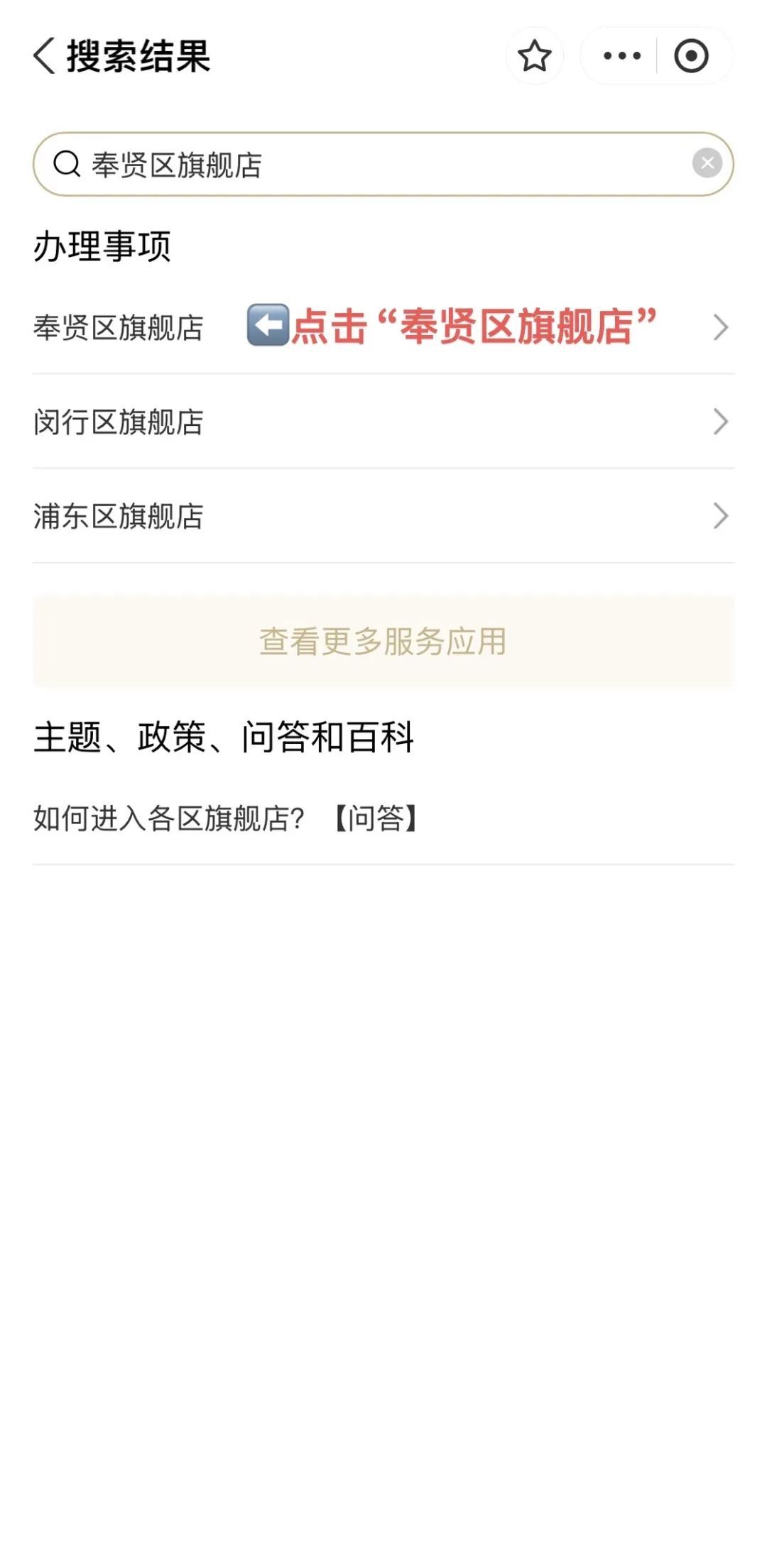 随申办中搜索“奉贤区旗舰店”