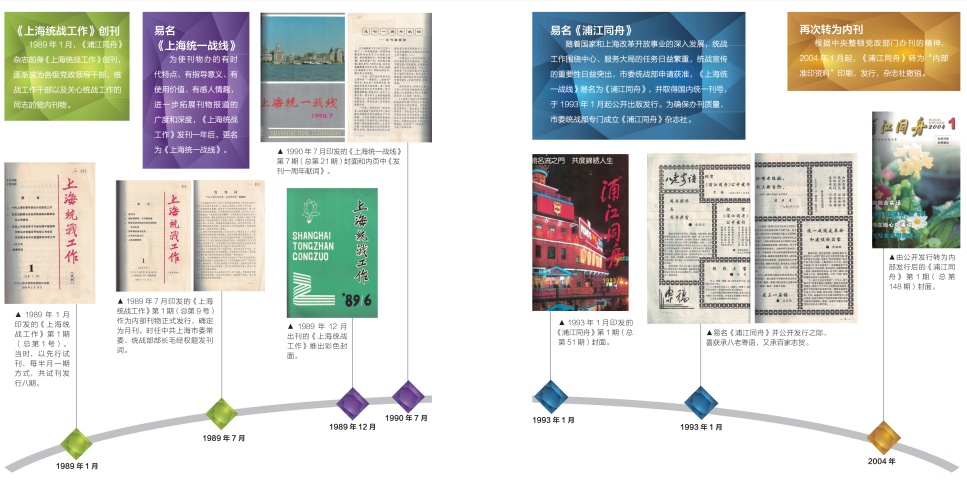 随着国家和上海改革开放事业的深入发展,统战工作围绕中心、服务大局的任务日益繁重,统战宣传的重要性日益突出,《上海统一战线》易名为《浦江同舟》,并取得国内统一刊号,于1993年1月起公开出版发行。