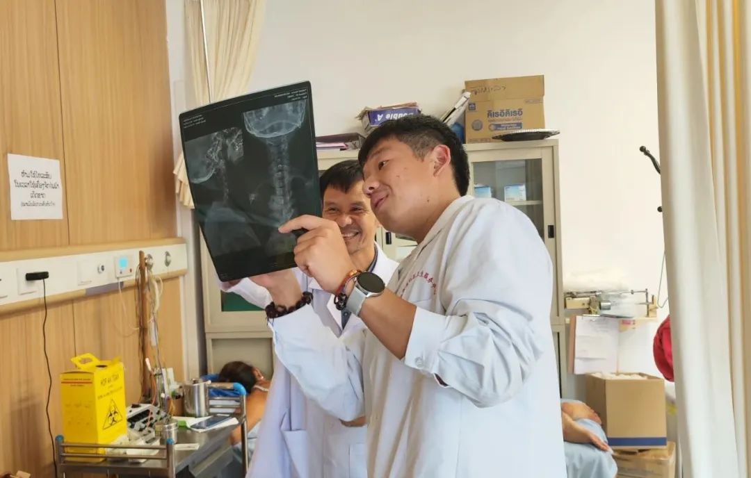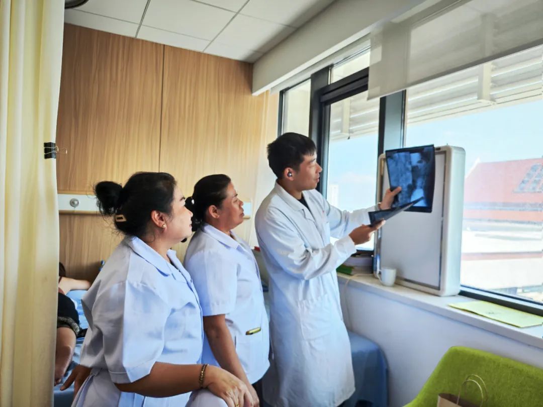 临床诊治过程中,针对老挝影像诊断领域存在的医疗短板,张晔根据自身骨伤科临床经验与影像学知识储备,业务授课近30课时,同时带教了多名当地医师。