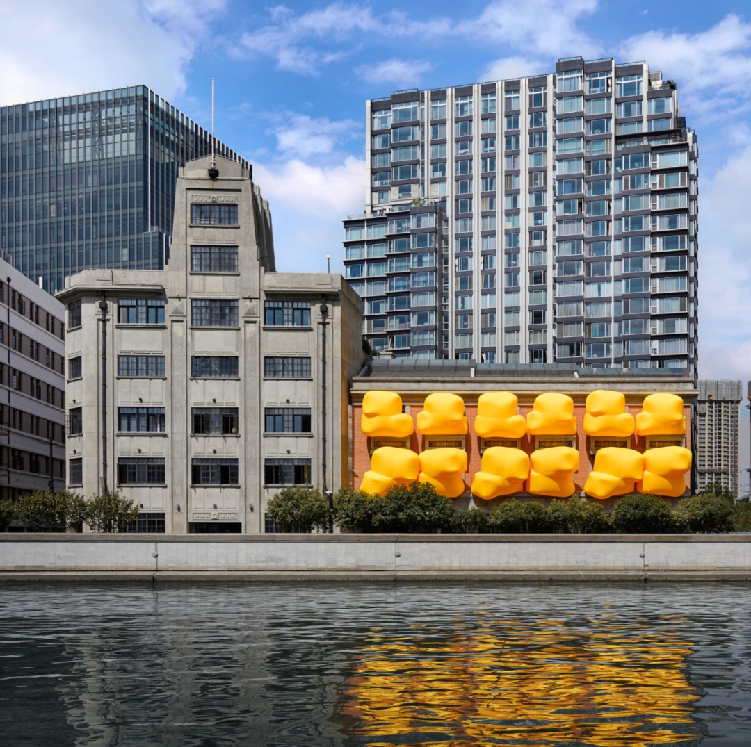 “苏河艺术季”上英国艺术家史蒂夫·梅萨姆位于苏州河畔的充气装置《包》