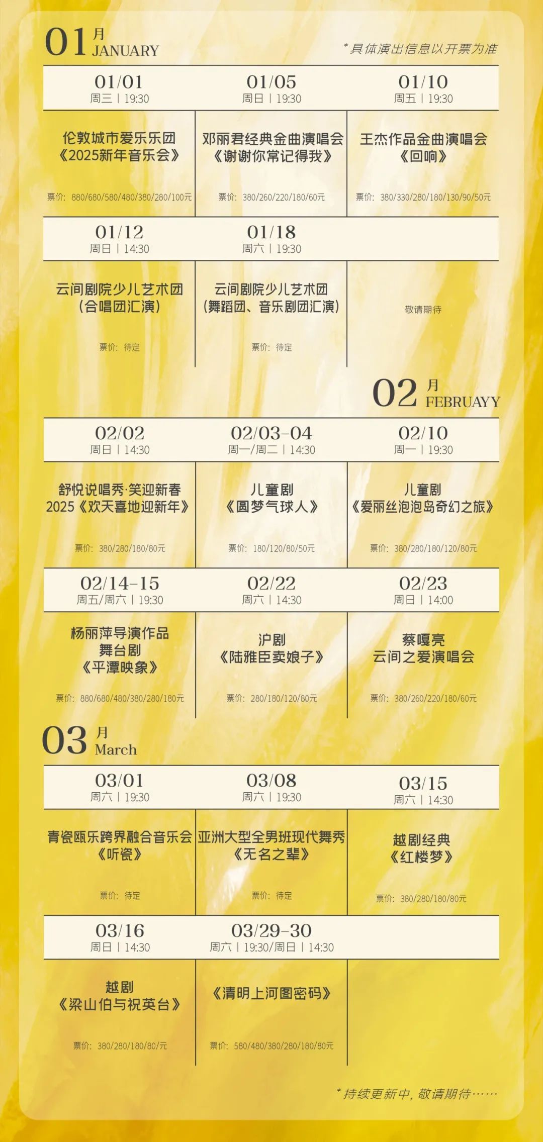 时间:2025年1月12日-2月9日(周三-周日)
