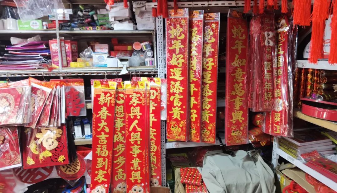 春节即将来临,南翔小商品市场推出各种款式的春联和装饰品,顾客可以根据自己的喜好和家居风格选择适合的春联款式。老板介绍,现在是春联、福字等节日饰品的销售旺季,普遍价格在10元左右。