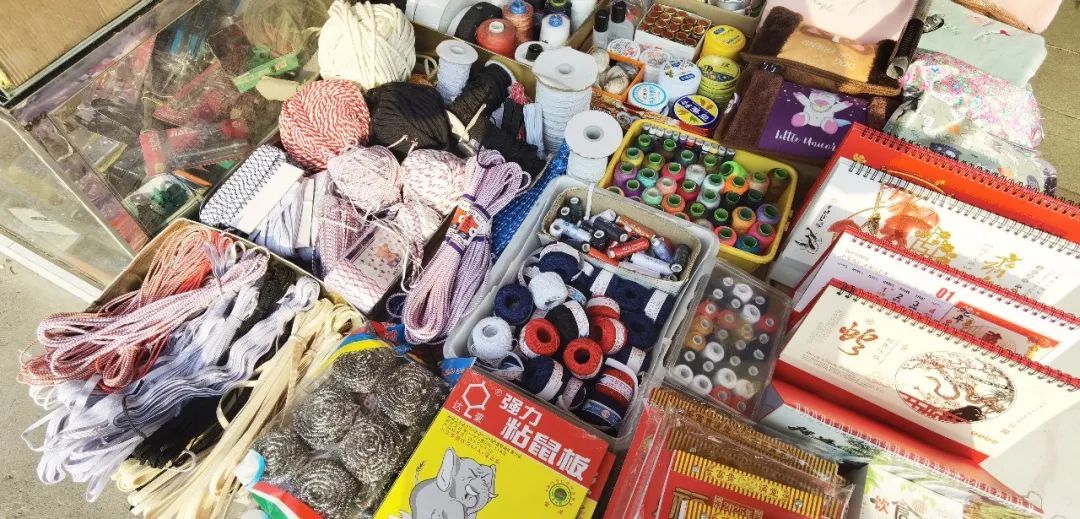 此外,市场里还藏着各种日常所需的小物件。比如平时不起眼的线团和松紧带,这些看似简单的小材料,在需要修补衣物或制作手工艺品时却显得尤为重要。一个线团2元、一段松紧带4元,非常方便。