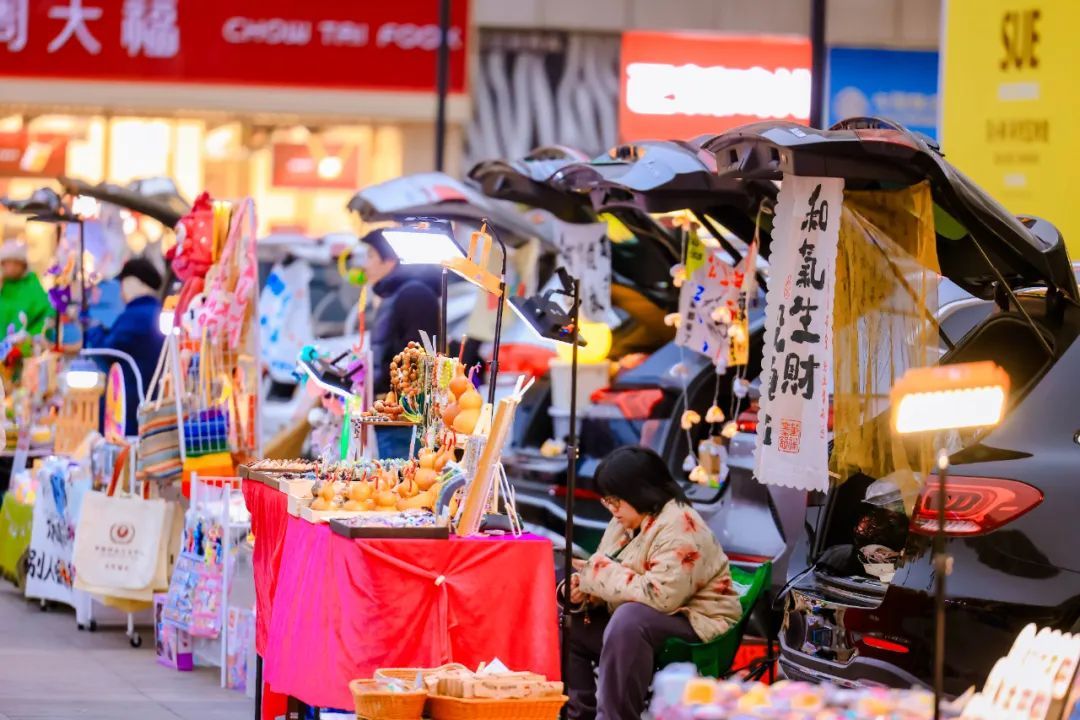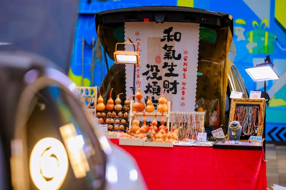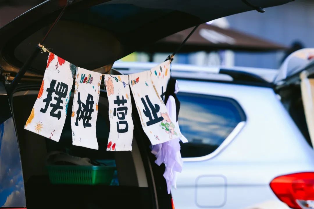 与一般店铺不同,落日后备箱市集给人的感觉更加鲜活生动。“和气生财没烦恼”“摆摊赚狗粮”“专职低价售卖多巴胺”……摊主来自各行各业,工作日朝九晚五两点一线,周末晚上摇身一变成了开车小老板。尽管大胆问价砍价,放手买买买,顺便聊上几句,分享副业经验,感受城市里人与人之间久违的热情。
