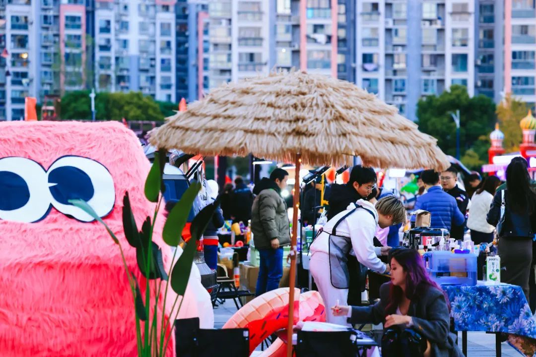 江桥万达东广场设置了落日后备箱市集