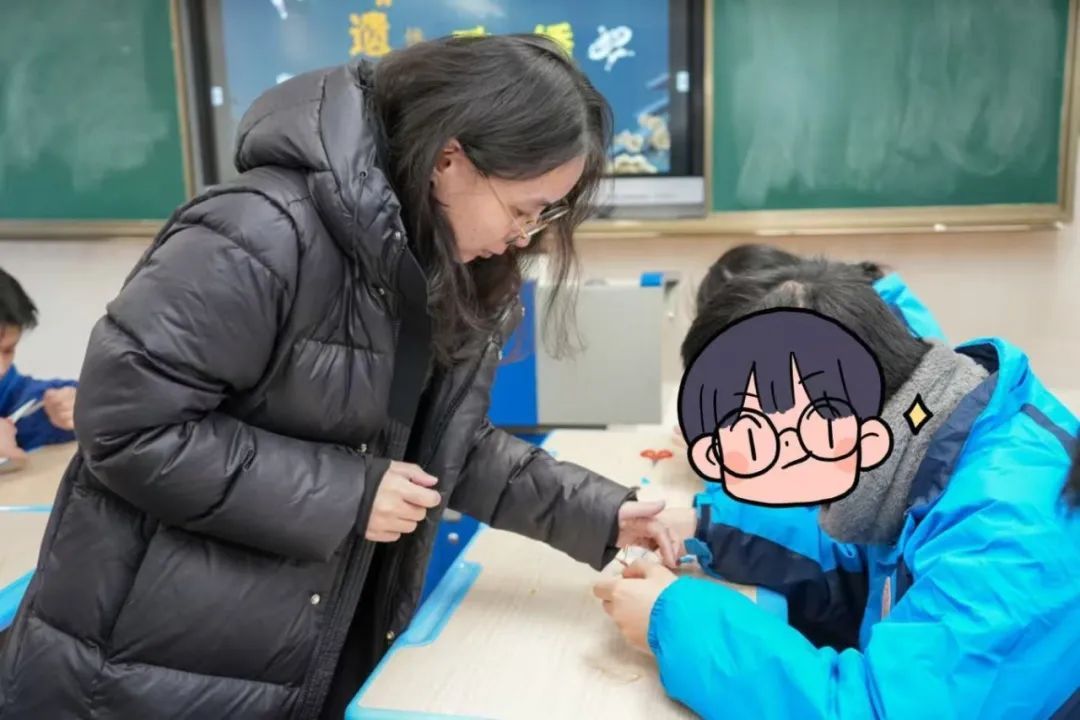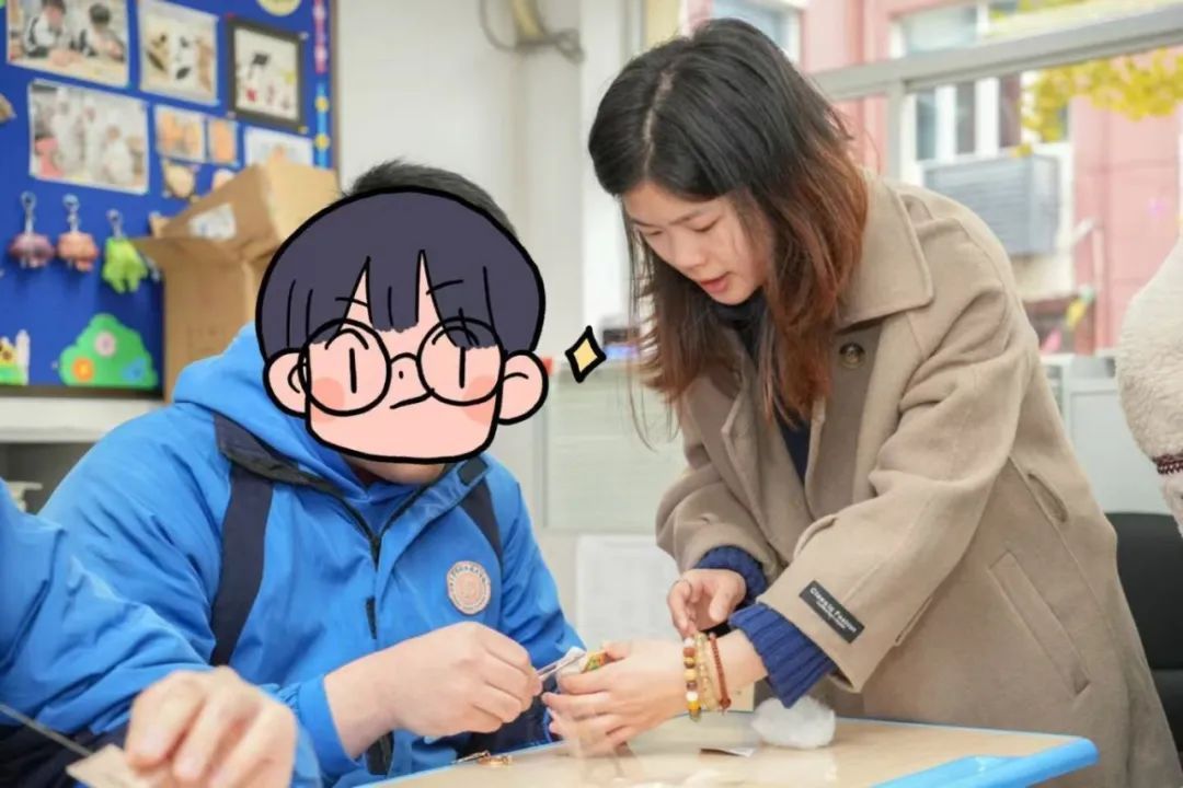 紧接着,同学们纷纷克服困难,细心地将珠子与珠片逐一穿引,逐渐在扇面上勾勒出精美的图案,体现了他们的耐心、专注与创新。同学们通过自己的方式证明,他们同样能在非遗文化的实践中绽放光彩。