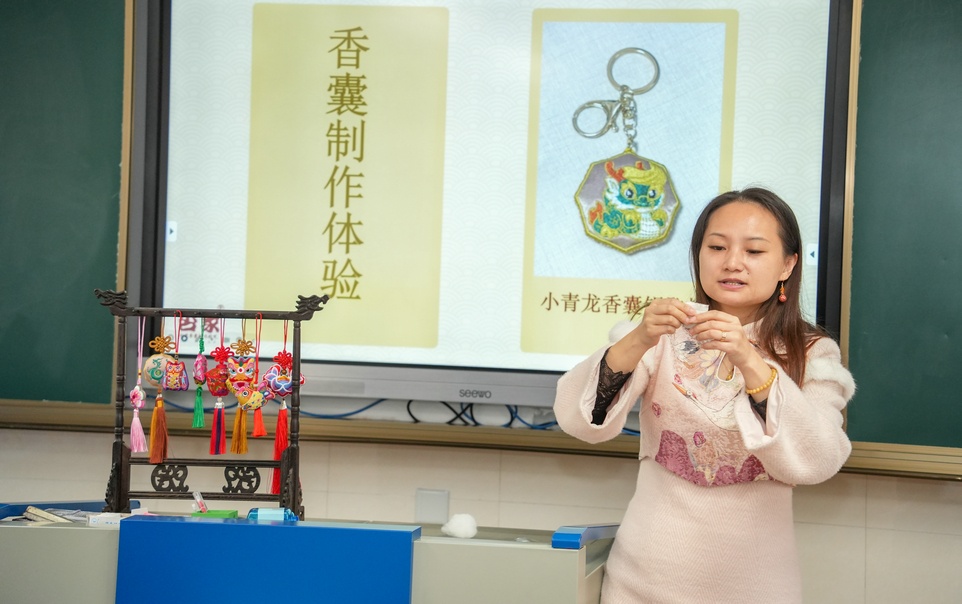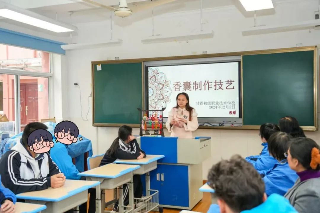 近日,由上海市基层科普行动计划支持,普陀区科协指导的市示范型社区书院项目——“泉家Yi起来”走进上海市甘霖初级职业技术学校,为特殊教育的学生们带来了一场场精彩绝伦的公益非遗体验系列课程活动。 本次的非遗体验活动是“泉家Yi起来”社区书院项目的一个特色版块,旨在通过社校企的合作,帮助特殊学生通过学习非遗知识,掌握一技之长,拓宽其服务自我、适应社会、职业发展的渠道。 古法置物架上,错落有致地陈列着一个个色彩斑斓、图案精致的香囊……活动现场,同学们被这些小巧玲珑的艺术品深深吸引。香囊上细腻的刺绣,或是繁复的花卉,或是灵动的鸟兽,每一件都仿佛诉说着古老的故事。 学生们全神贯注地聆听关于香囊的历史与制作工艺的介绍,理解中医药知识的博大精深。随后,在讲师和延河中学志愿者老师的指导下,大家练习穿针引线。尽管动作尚显生疏,但每一针的穿梭、每一线的交织,都透露出他们对传统文化的尊重。 活动伊始,讲师通过生动的介绍带领同学们了解扎染的历史渊源、技艺特点和其中蕴含的毛细现象。从图案的设计构思,到布料的折叠方式,再到如何用绳子进行绑扎以及后续的浸染、拆线与清洗,一个扎染作品的诞生需要经过数道工序。