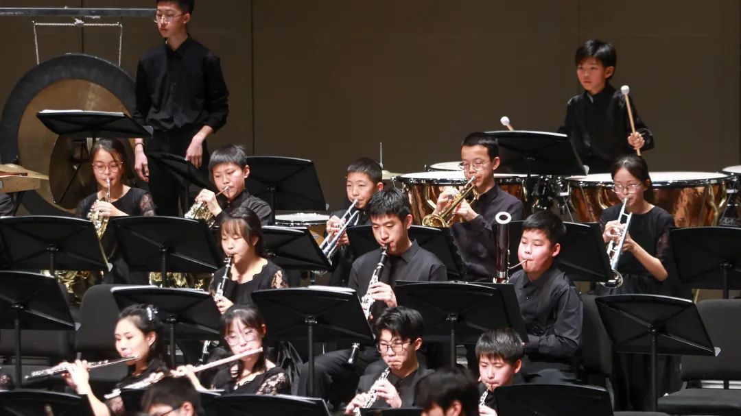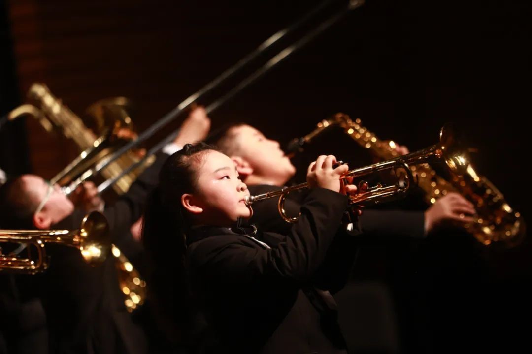 上外嘉外和疁城实验学校的师生联手带来爵士大乐队作品《A Few Good Men Score》,节奏强烈、音乐效果宏大,包含力量和热情;南苑小学《闹新春》则融合了东北二人转风格,旋律粗犷奔放、节奏明快……13支乐曲风格不一,但都同样动听,给现场观众带来了美的享受。