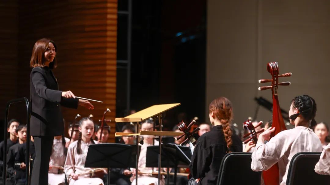 嘉定区青少年活动中心民乐团演奏了著名作曲家王建民的民族管弦乐佳作《延河随想》。在老师卫勤玲的指挥下,孩子们用悠扬的旋律带领观众走进陕北大地,感受其独特魅力。全曲以大气磅礴的唢呐结尾,赢得全场掌声。