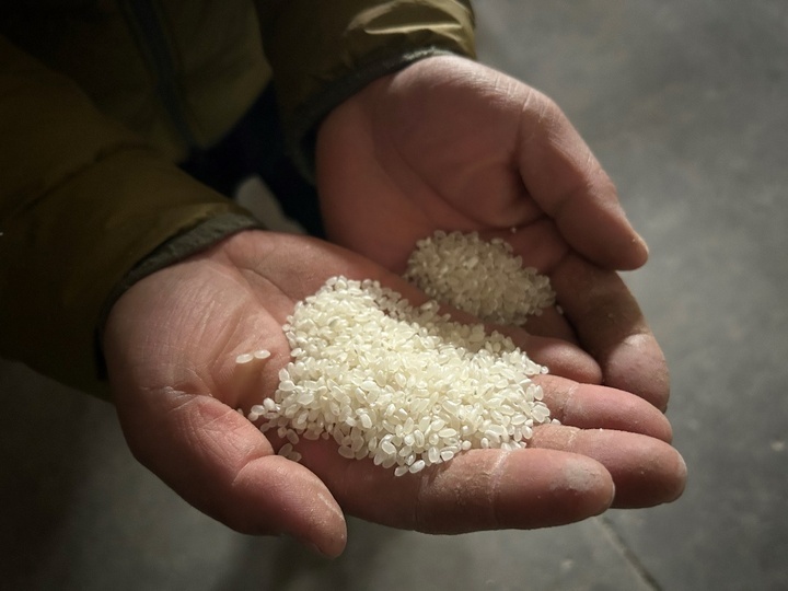 福康米厂负责人孟庆文向记者展示碾出的新米 产业成长的“新引擎”
