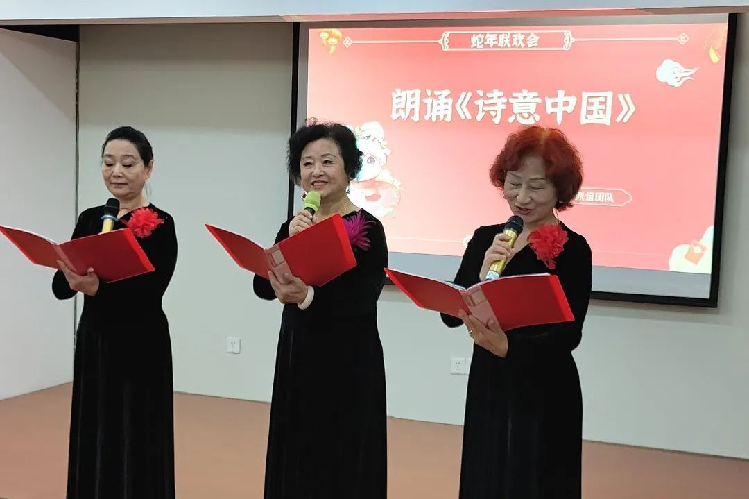 随后,悠扬的歌声、幽默风趣的小品、韵味十足的沪语戏曲等节目轮番上演。联谊团队带来的节目《诗意中国》引发全场大合唱,大家用激昂歌声表达对祖国的热爱。