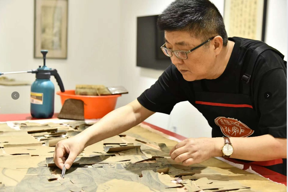 记者了解到,周国伟的书画装裱修复技艺入选了第七批上海市非物质文化遗产代表性项目名录,在周国伟看来,书画装裱修复不仅是一门技艺,更是一种艺术。在他手上“复活”的佳作数不胜数,“最多一个月,装裱300张老画。”周国伟介绍说,他提倡“还原裱”概念,强调在修复古代书画时,应尽可能保留原作的历史信息和风格,修旧如旧。