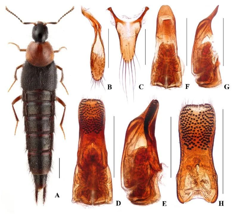 此外,在本次调查中还发现了2个中国新记录种,邵特突眼隐翅虫就是其中之一。