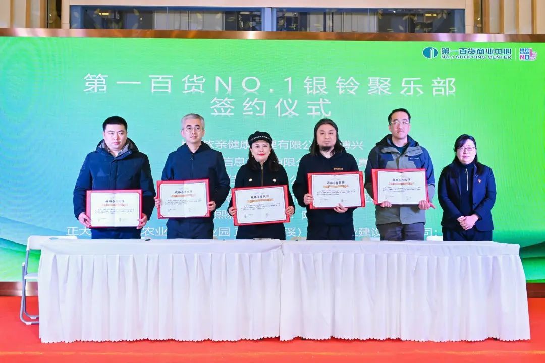 当天,第一百货与福寿康医护康养、绿地金创科技集团、米耶文化、焙尼传统养生烘焙、依亲康养、中侨参茸、锣钹科技、玖佳影业等多家企业签订了合作协议,共同构建创新多元的消费场景。