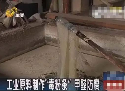 有报道称,公安机关曾在缴获的毒粉条中提取三份样品检测,均检验出甲醛1800余mg/kg,甲醛含量超标400倍,重金属铬含量也超标200余倍。