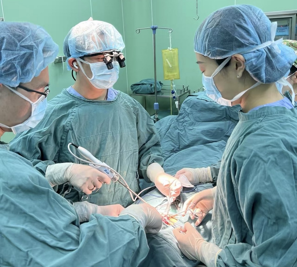 △重庆大学附属肿瘤医院医生正在为小沈手术